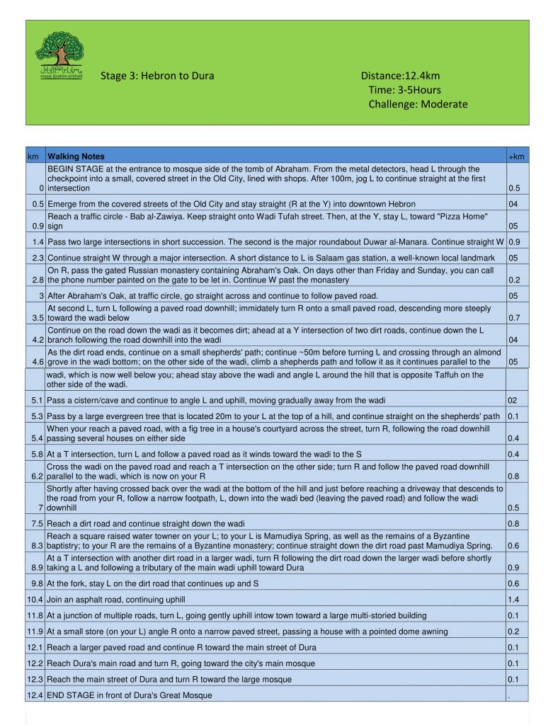 The Hebron to Dura day stage begins in front of the Ibrahimi Mosque (Al-Haram al-Ibrahimi), the most important landmark in Hebron, where Ibrahim (Abraham), revered by three religious traditions, was buried alongside his wife, his son, grandson, and their wives.